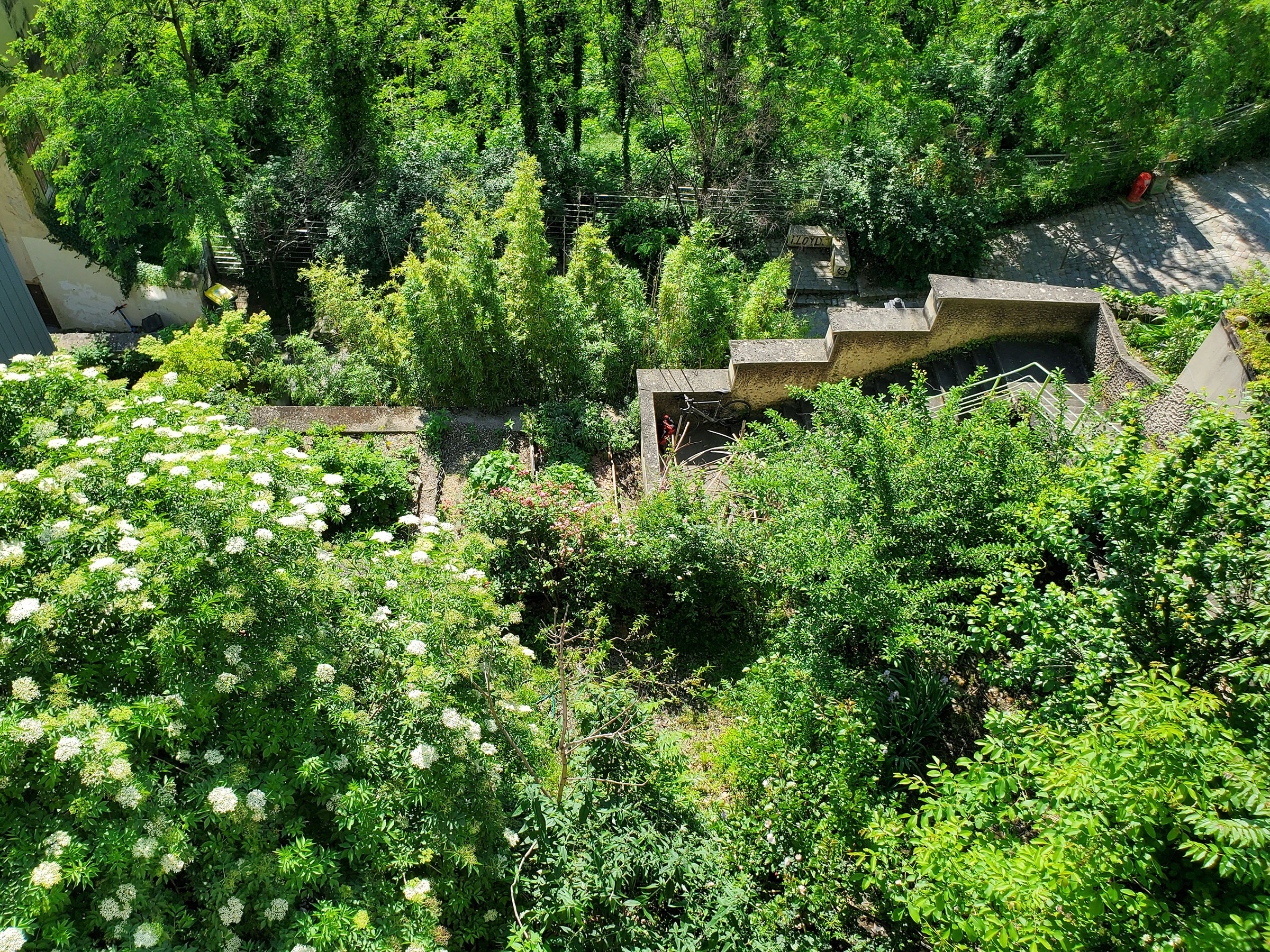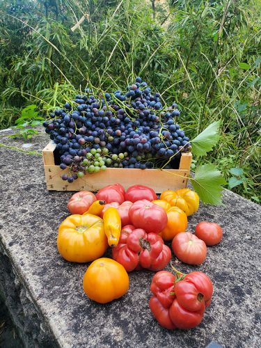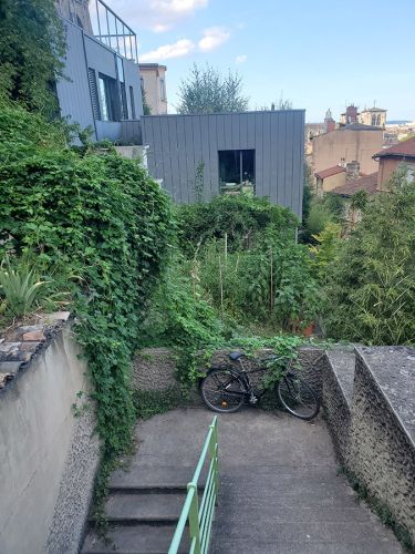 Iris et Madeleine, deux jeunes proches de la Communauté, entendent parler de cette pépite cachée et décident, en 2017, de mettre en pratique leurs connaissances de permaculture sur la première des terrasses. La tâche est immense et pourtant elles arrivent à valoriser cette terre abandonnée depuis de nombreuses années. Courges, raisins et plantes aromatiques s’épanouissent sur cette petite parcelle de terre en plein coeur du Vieux Lyon, un bac à compost est mis en place grâce à des planches récupérées, et ce lieu abandonné recommence à prendre vie.